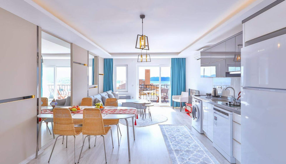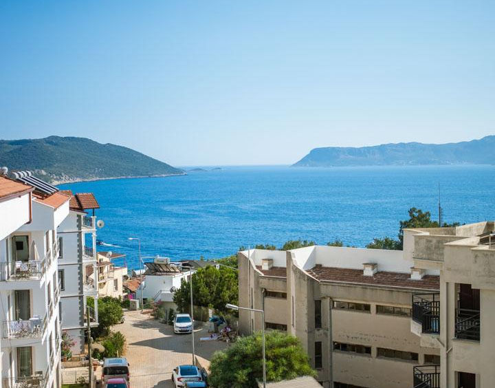 Kaş merkeze 200 mt mesafede yer alan dairemiz, muhteşem deniz manzarasına sahiptir