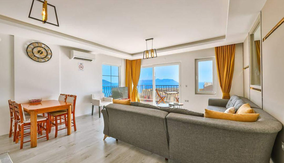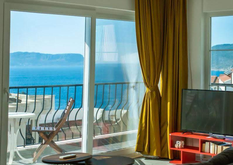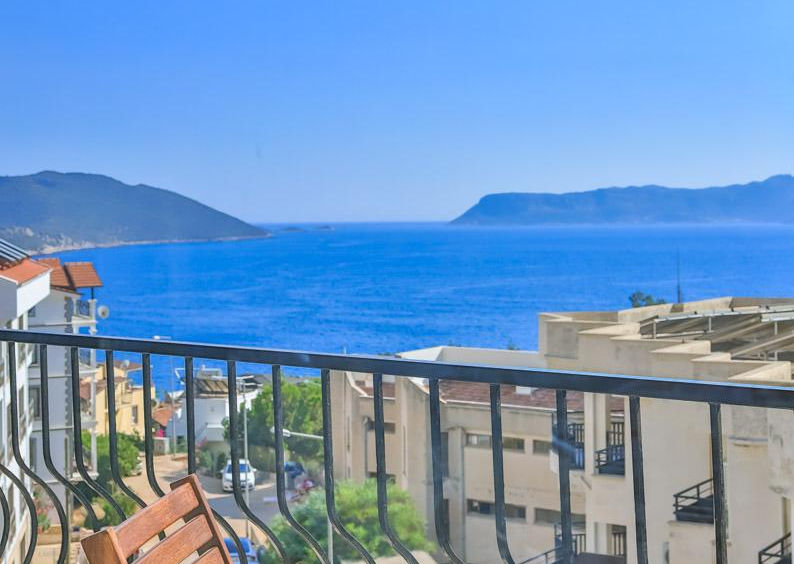 Kaş merkeze 200 mt mesafede yer alan dairemiz, muhteşem deniz manzarasına sahiptir
